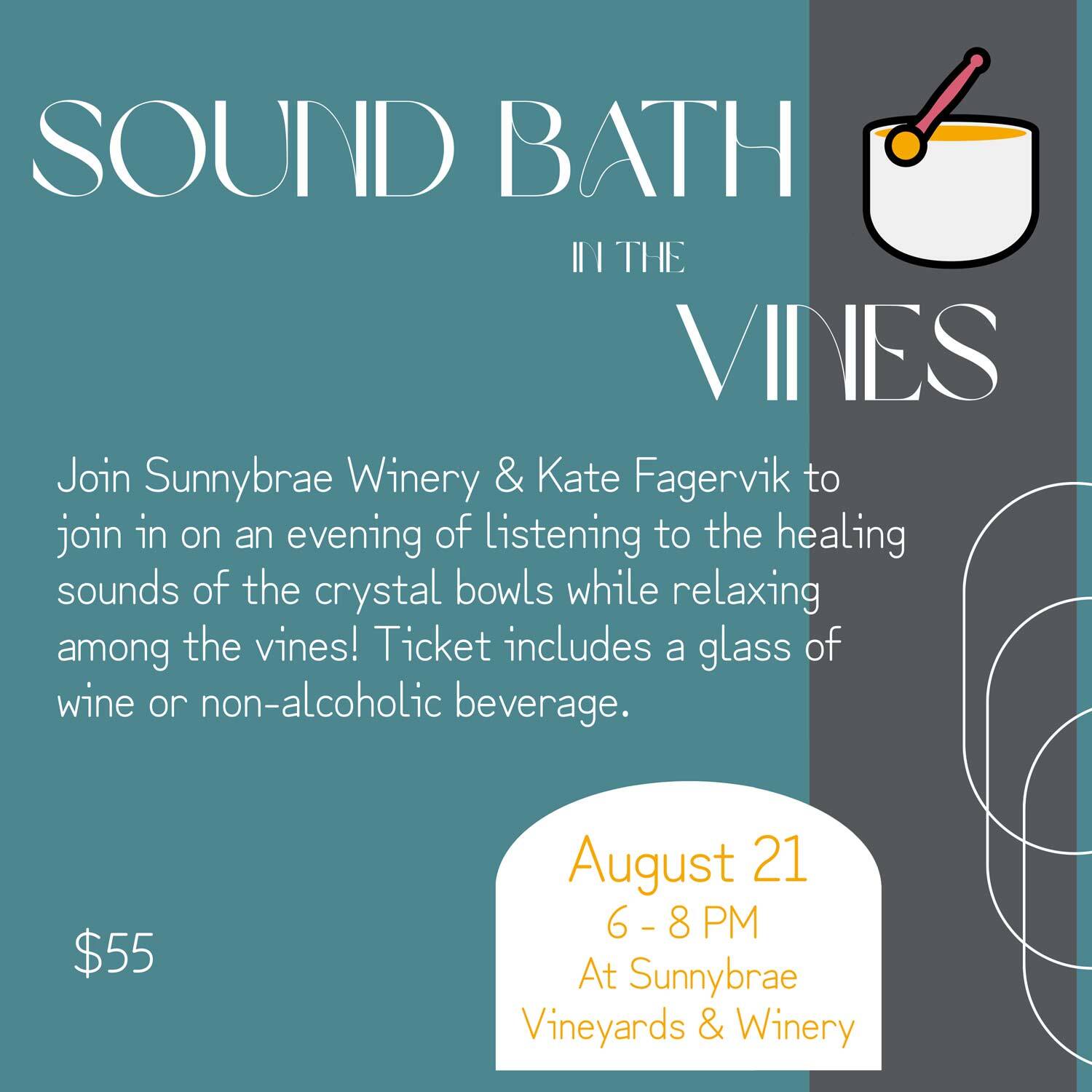 Relax, reset, and recharge among the vines. Experience the healing vibrations of crystal sound bowls with Kate Fagervik while overlooking Shuswap Lake. After the one-hour session, enjoy a glass of wine or a non-alcoholic beverage as the sun sets.